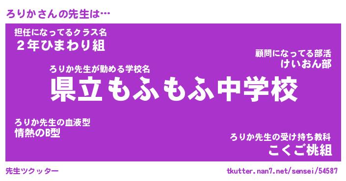 | ヘコむあだ名 | 『ろりにゅー』『なまこ酢』 |