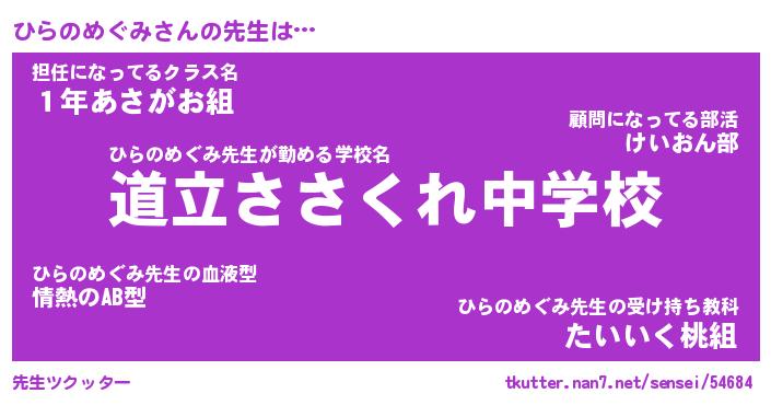 | ヘコむあだ名 | 『ひらもー』『つくし』『ひらぷりん』 |
