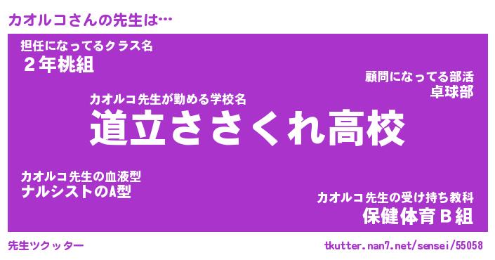 | 意味不明あだ名 | 『ペロリンカオルコ』『永久保存カオルコ』 |