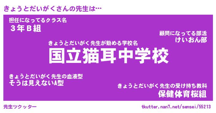| 男性向けラノベタイトル風あだ名 | 『きょうとだいがくの憂鬱』 |