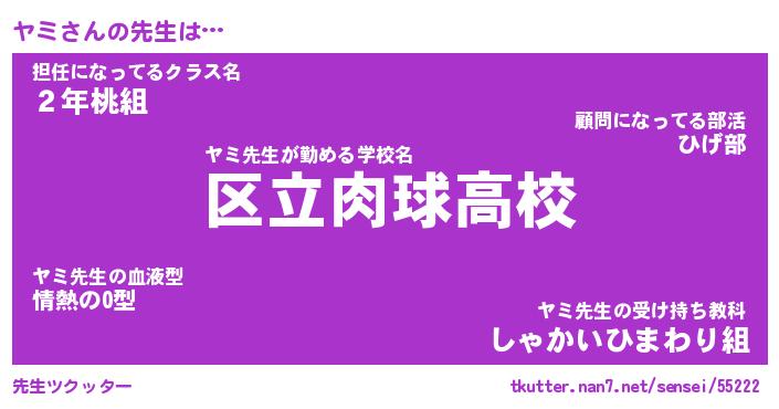 | ヘコむあだ名 | 『ヤミふぇ~』『なまこ酢』『ヤミを』 |