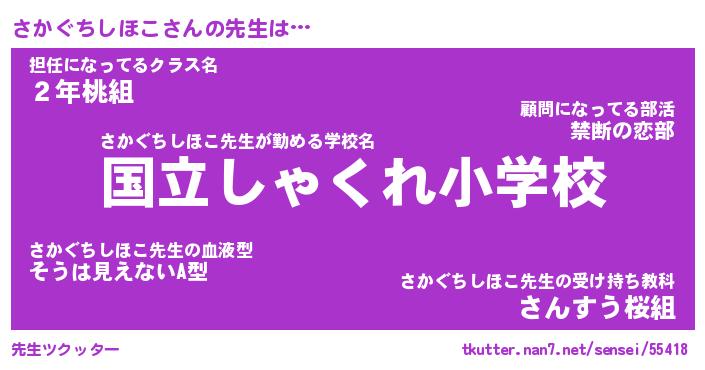 | 伝説のあだ名 | 『伝説のスナイパーさかぐちしほこ』 |