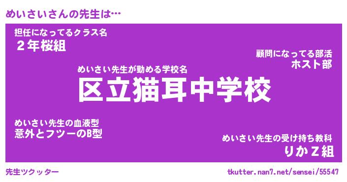 | 欧米人風あだ名 | 『マイケルめいさい』『ウサインめいさい』 |
