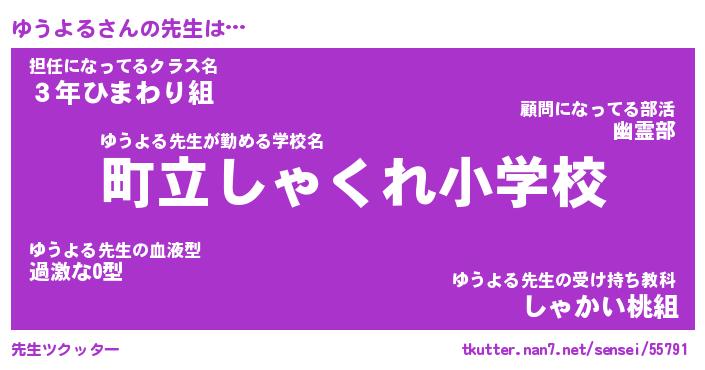 | ファンタジー風あだ名 | 『ユウフェル』『エターナルユウヨルー』 |