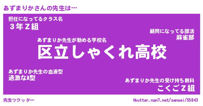 | 伝説のあだ名 | 『封印されしスナイパーあずまりか』 |