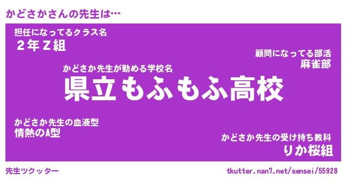 | 意味不明あだ名 | 『ペロリンかどさか』『永久保存かどさか』 |