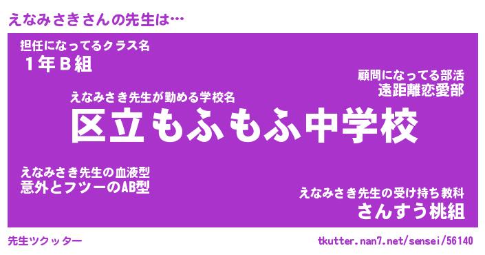 | ヘコむあだ名 | 『えなにゅー』『つくし』『えなっ子』 |