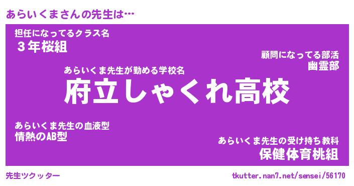 | 伝説のあだ名 | 『封印されしスナイパーあらいくま』 |