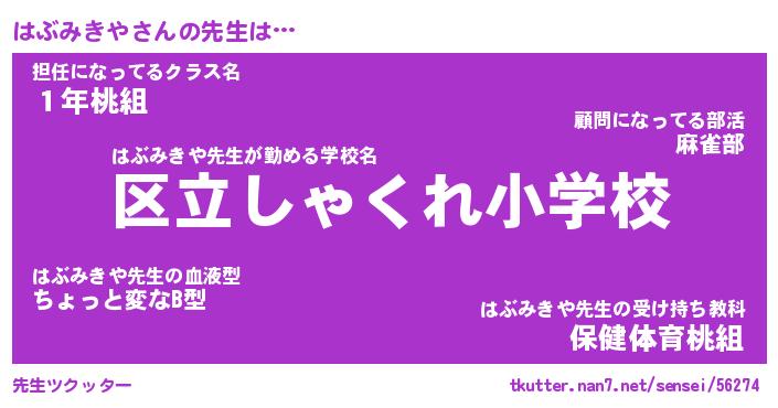 | 肩書あだ名 | 『はぶみきや御曹司』『はぶみきや副担任』 |