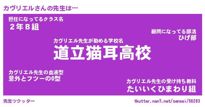 | ファンタジー風あだ名 | 『カヴフェル』『エターナルカヴリエルー』 |