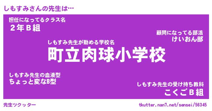 | 意味不明あだ名 | 『ペロリンしもすみ』『永久保存しもすみ』 |