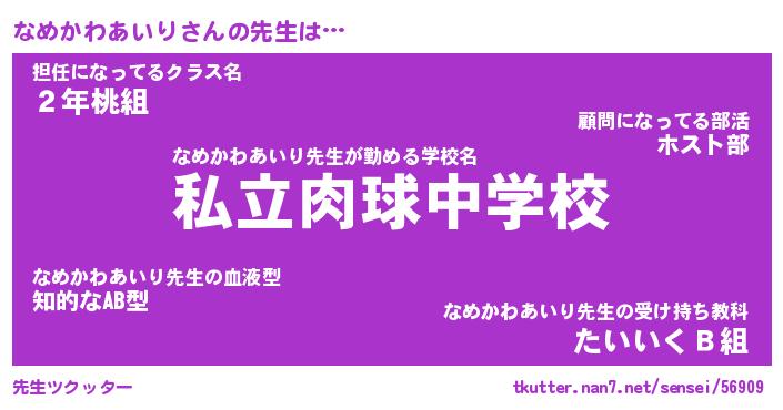| ヘコむあだ名 | 『なめふぇ~』『なまこ酢』『なめお』 |