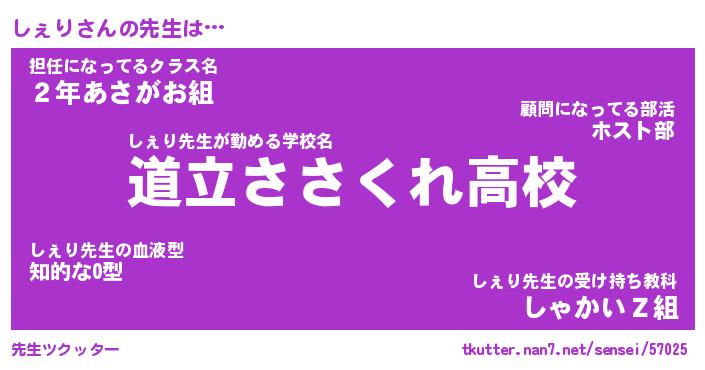 | ヒーロー風カッコイイあだ名 | 『スーパーシェリ』『ウルトラしぇりマン』 |
