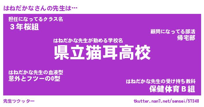 | ファンタジー風あだ名 | 『ハネフェル』『エターナルハネダカナー』 |