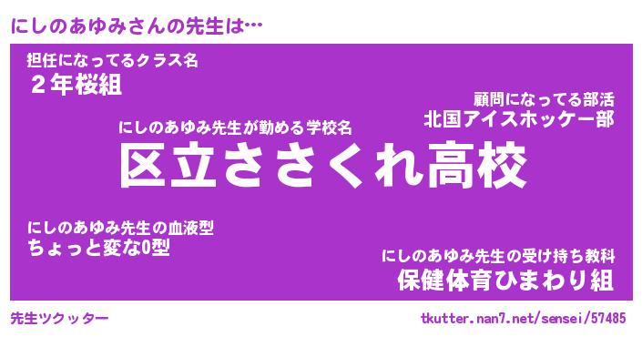 | ヒーロー風カッコイイあだ名 | 『スーパーニシノアユミ』『幻影騎士ニシ』 |