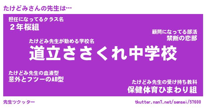 | ファンタジー風あだ名 | 『タケフェル』『エターナルタケドミー』 |