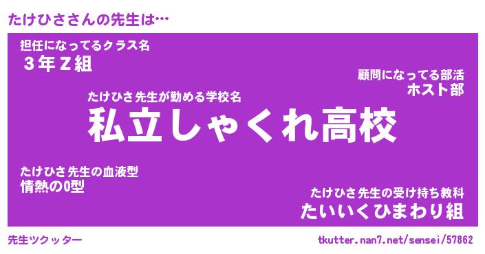 | 意味不明あだ名 | 『ペロリンたけひさ』『永久保存たけひさ』 |