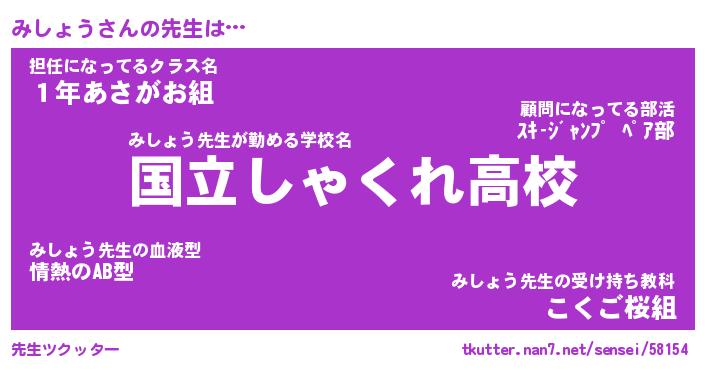 | 伝説のあだ名 | 『伝説のスナイパーみしょう』 |