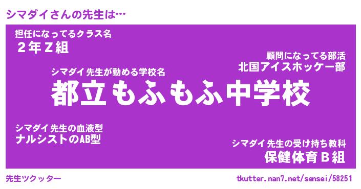 | 意味不明あだ名 | 『ペロリンシマダイ』『永久保存シマダイ』 |