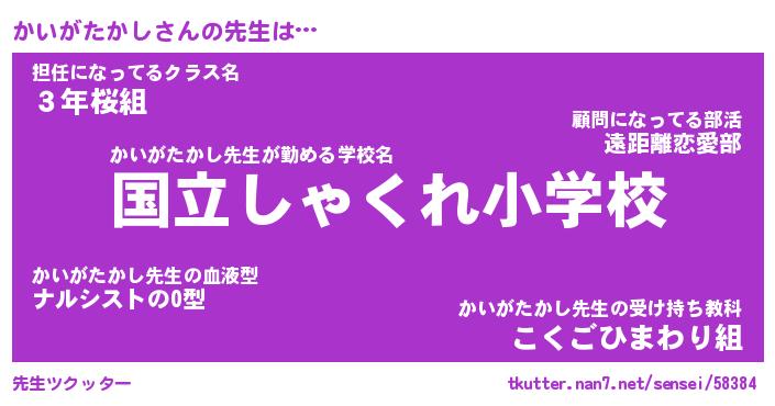 | 伝説のあだ名 | 『伝説のスナイパーかいがたかし』 |
