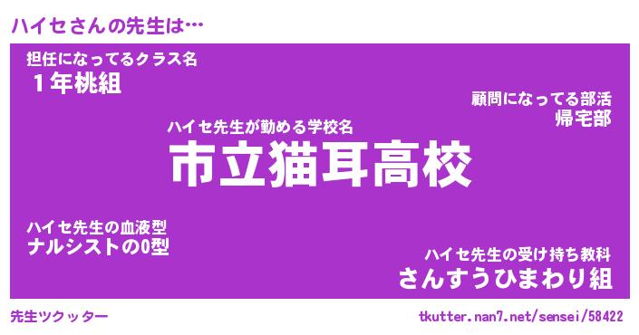 | ポケモン風あだ名 | 『ハイチュウ』『ハイセダネ』 |