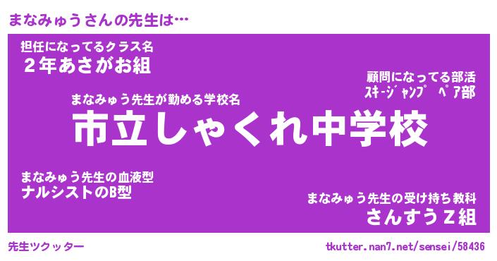 | 伝説のあだ名 | 『伝説のスナイパーまなみゅう』 |