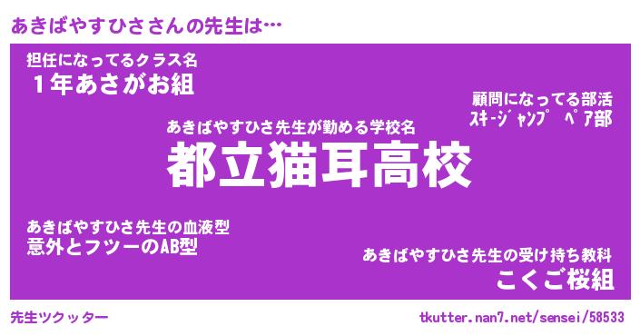 | 意味不明あだ名 | 『ペロリンあきばやすひさ』 |