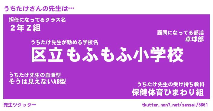 | 意味不明あだ名 | 『ペロリンうちたけ』『永久保存うちたけ』 |