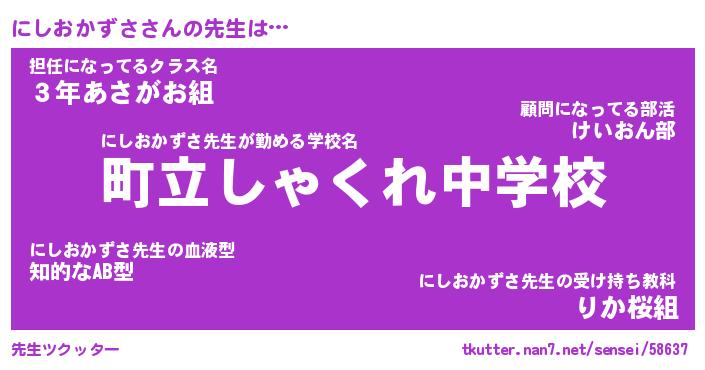 | ヒーロー風カッコイイあだ名 | 『スーパーニシオカズサ』『暗黒騎士ニシ』 |