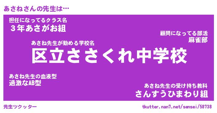 | ヒーロー風カッコイイあだ名 | 『スーパーアサネ』『ウルトラあさねマン』 |