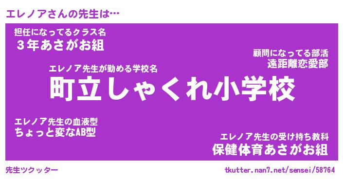 | 意味不明あだ名 | 『ペロリンエレノア』『永久保存エレノア』 |