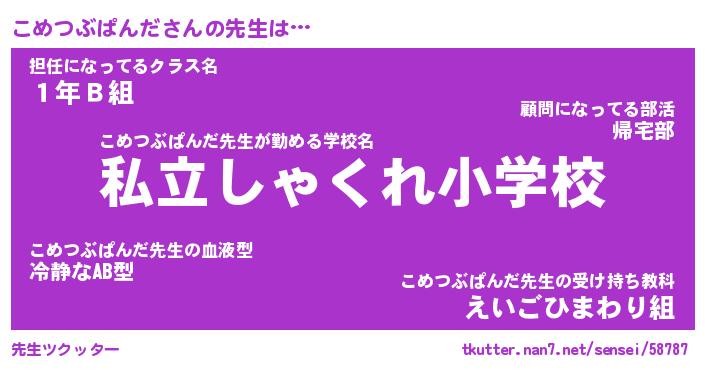 | 伝説のあだ名 | 『伝説のスナイパーこめつぶぱんだ』 |