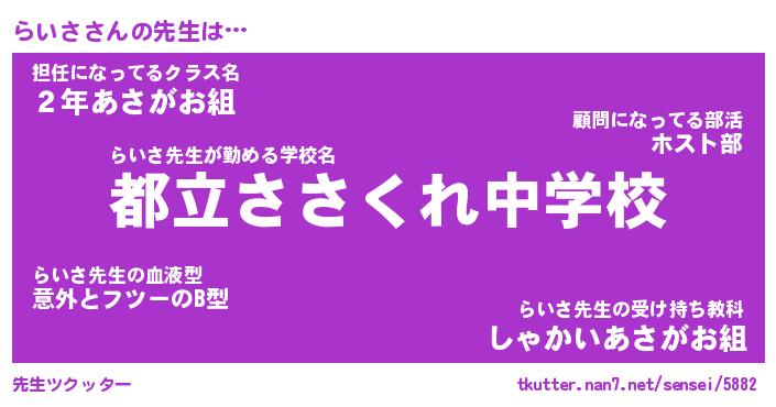 | ヘコむあだ名 | 『らいもー』『なまこ酢』『らいっ子』 |