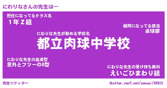 | 意味不明あだ名 | 『ペロリンにわりな』『永久保存にわりな』 |