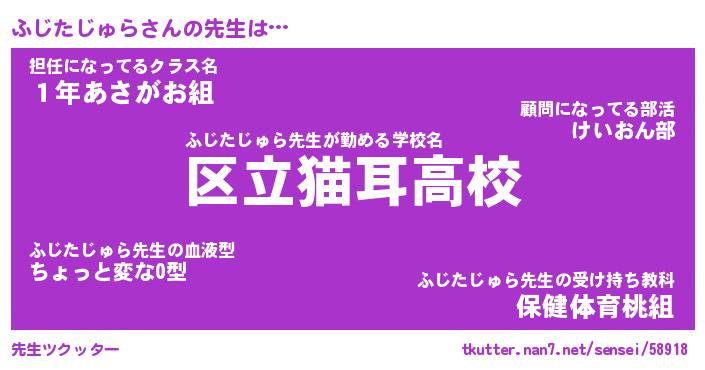 | 肩書あだ名 | 『ふじたじゅら社長』『ふじたじゅら教頭』 |