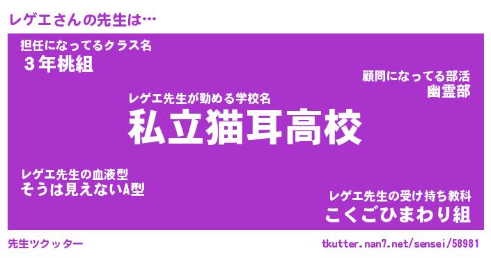 | ヘコむあだ名 | 『レゲにー』『なまこ酢』『レゲ太郎』 |