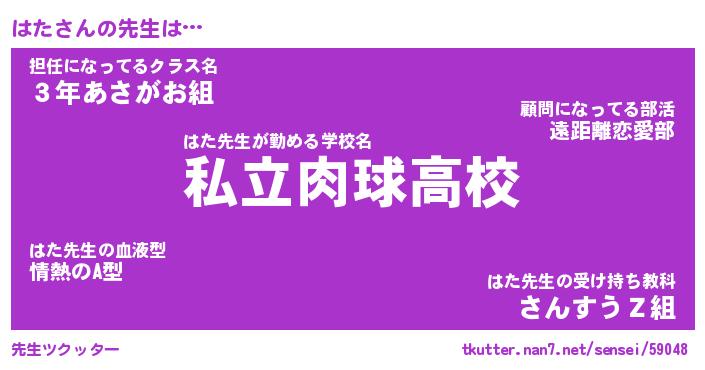 | ファンタジー風あだ名 | 『ハタフェル』『エターナルハター』 |