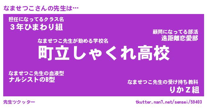 | 伝説のあだ名 | 『封印されしスナイパーなませつこ』 |