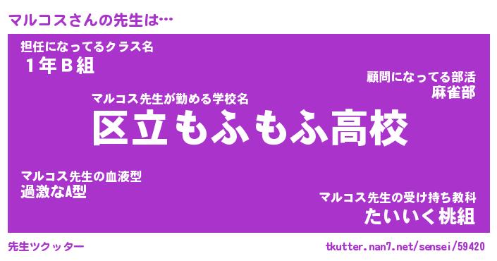 | 意味不明あだ名 | 『ペロリンマルコス』『永久保存マルコス』 |