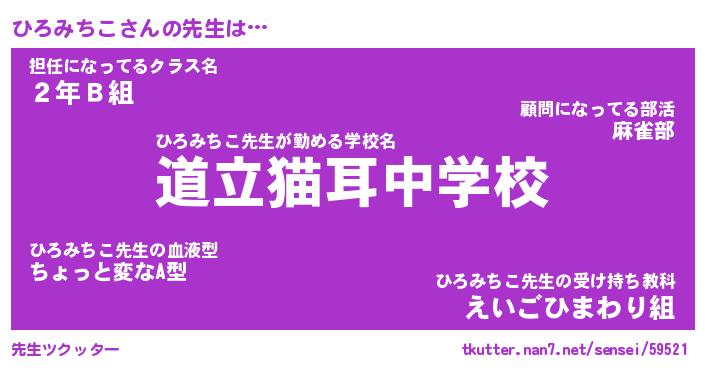 | ヒーロー風カッコイイあだ名 | 『スーパーヒロミチコ』『天弓騎士ヒロ』 |
