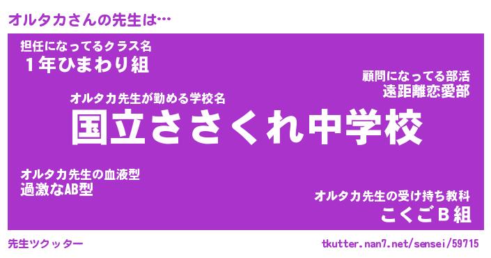 | 意味不明あだ名 | 『ペロリンオルタカ』『永久保存オルタカ』 |