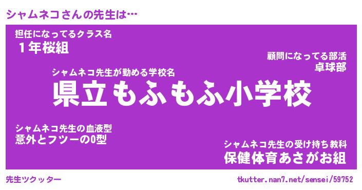 | ヒーロー風カッコイイあだ名 | 『スーパーシャムネコ』『天弓騎士シャ』 |