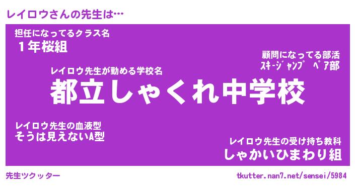 | ヒーロー風カッコイイあだ名 | 『スーパーレイロウ』『炎刃騎士レイ』 |