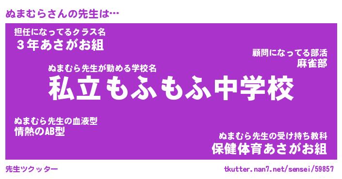 | 意味不明あだ名 | 『ペロリンぬまむら』『永久保存ぬまむら』 |