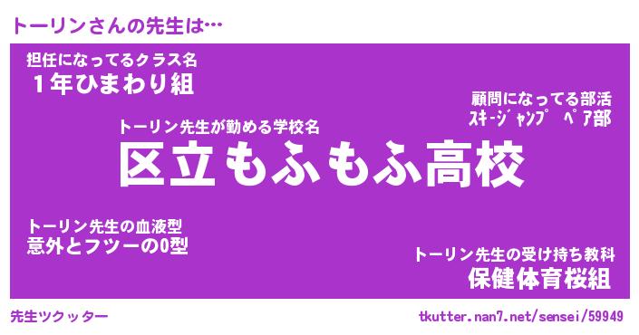 | 意味不明あだ名 | 『ペロリントーリン』『永久保存トーリン』 |