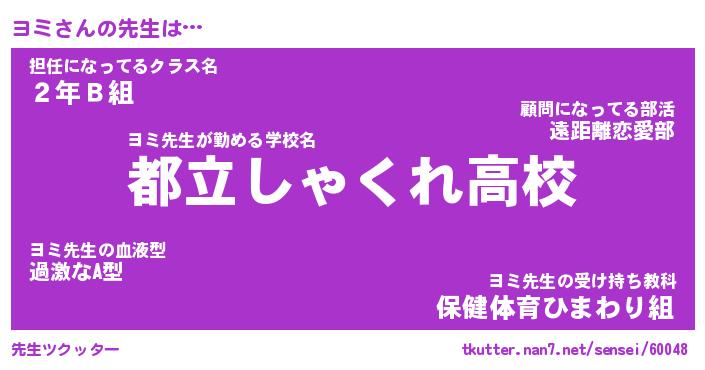 | ヘコむあだ名 | 『ヨミっふぃ~』『なまこ酢』 |