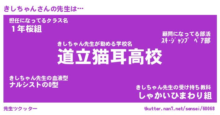 | ヘコむあだ名 | 『きしにー』『つくし』『きし太郎』 |