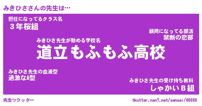 | 意味不明あだ名 | 『ペロリンみきひさ』『永久保存みきひさ』 |