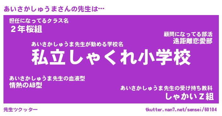 | ヒーロー風カッコイイあだ名 | 『スーパーアイサカシュウマ』 |
