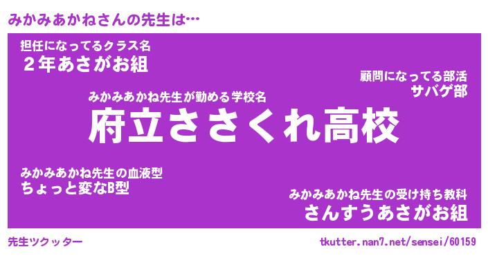 | 伝説のあだ名 | 『封印されしスナイパーみかみあかね』 |